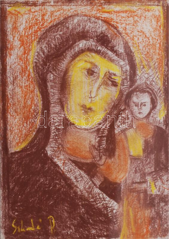 Beschreibung: Szántó jelzéssel: Madonna a kis Jézussal, pasztell, papír, üvegezett fa keretben, 29,5×21 cm