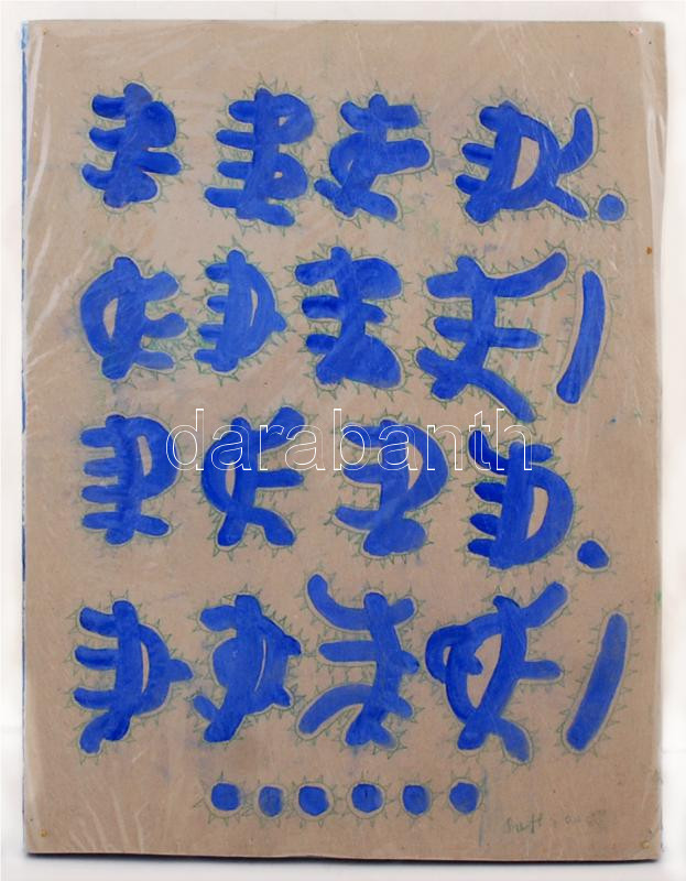Beschreibung: Szeift Béla (1944-2012): Kék írás. Akvarell, karton, jelzett, 42×31 cm