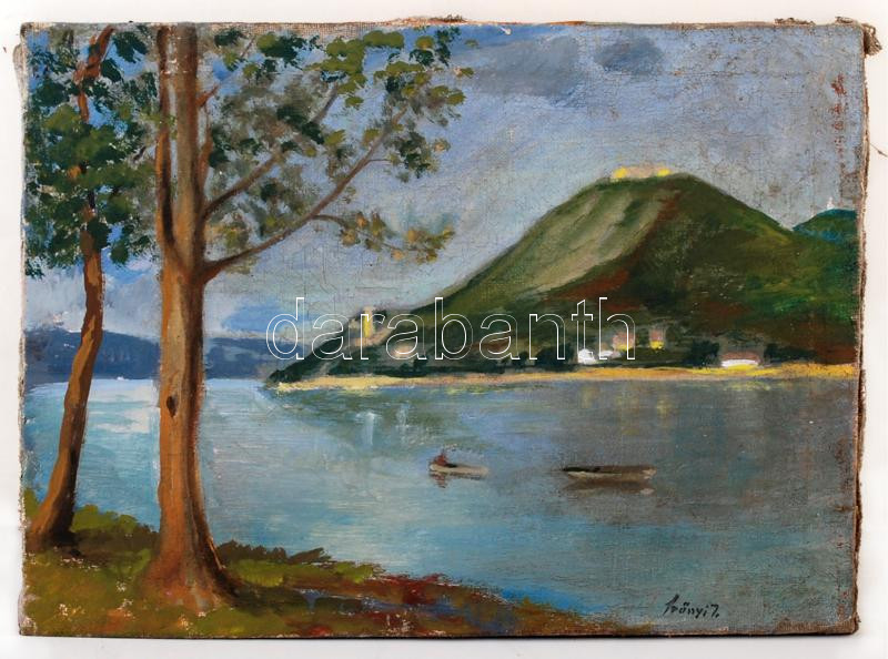 Beschreibung: Szőnyi jelzéssel: Kilátás Visegrádra, olaj, vászon, 33,5×45,5 cm