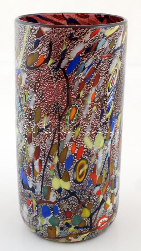 Beschreibung: Muránoi Zecchin váza, többrétegű, millefiori díszítéssel, hibátlan, jelzett, m:22,5 cm