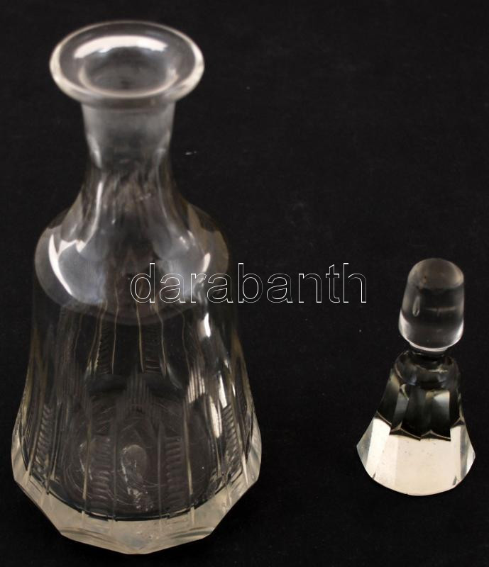 Beschreibung: Szakított üveg kiöntő dugóval, csorbákkal, m: 23 cm