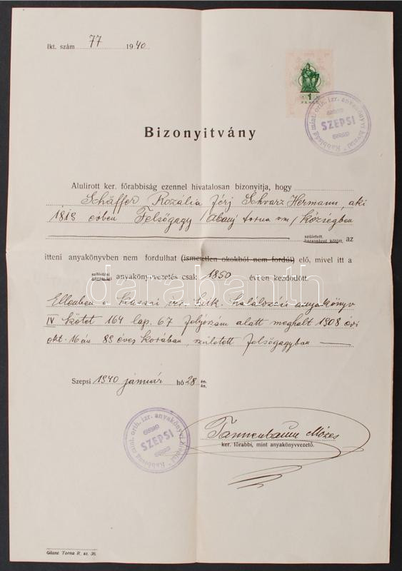 1940 Tannenbaum Mózes szepsi rabbi saját kézzel aláírt dokumentum / Au... https://www.darabanth.com/de/236-Fernauktion/236.0/Andere-Sammelgebiete/Judaica~400002/1940-Tannenbaum-Mozes-szepsi-rabbi-sajat-kezzel-alairt-dokumentum-Autograph-signed-document-o~II1084233