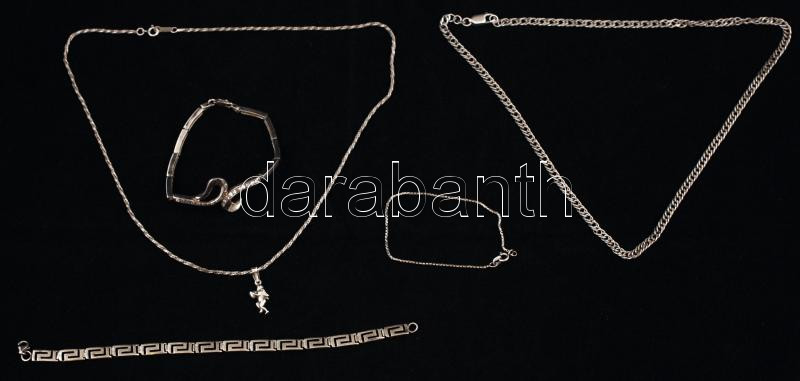 Beschreibung: 2 db ezüst(Ag) nyaklánc, 3 db ezüst(Ag) karkötő, jelzettek, br: 37,2 g