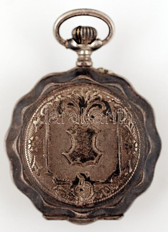 Beschreibung: Ezüst (Ag.) zsebóra belső fedelén "Remontoir Cylindre 10 rubins" felirattal, jelzett (84), bruttó:29 g, d:3,4 cm