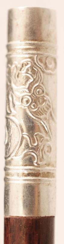 Beschreibung: Ezüst és fa kínai evőpálcika, Ag.,bruttó: 20gr., 25cm/ Silver and wooden chopsticks, Ag, gross. 20g, 25cm