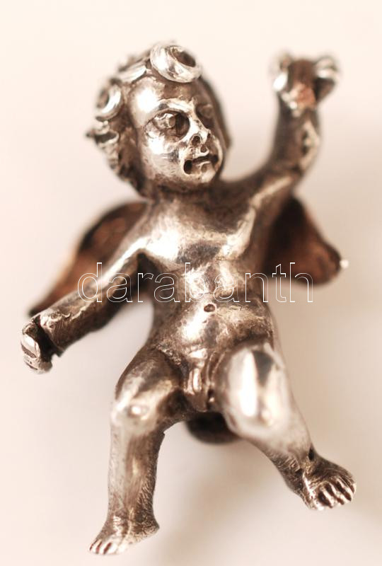 Ezüstmedál: puttó, Ag.,nettó: 3,4gr., több helyen törött, 1,7cm /Silver Medal: putto, Ag, net. 3,4gr, flawy, 1,7cm.
