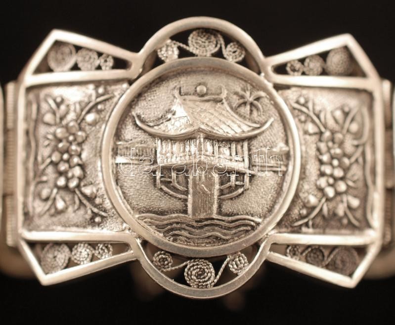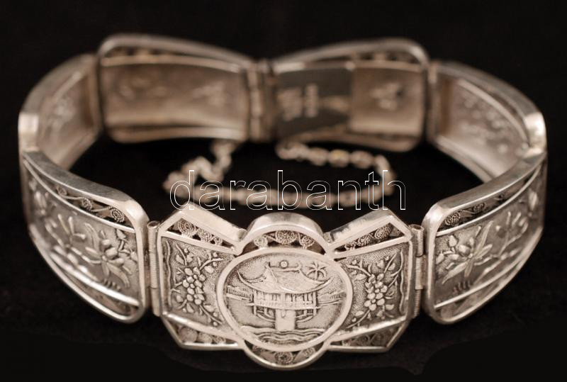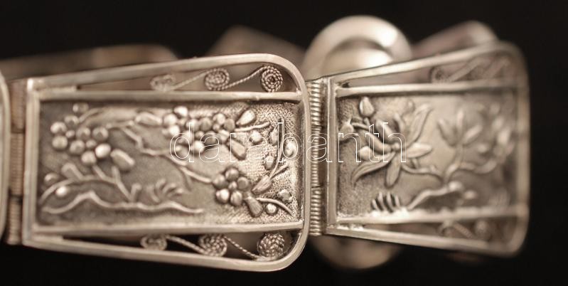 Beschreibung: Női ezüst karkötő, gazdagon díszített, jelzett, Ag.g, 31gr./Women's silver bracelet, richly decorated, signed, Ag.g, 31gr.