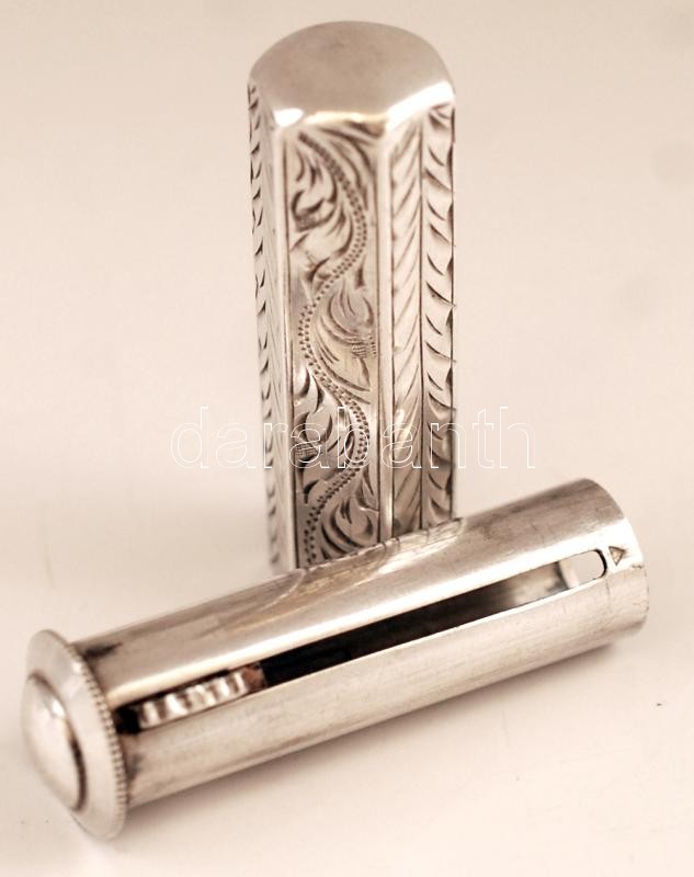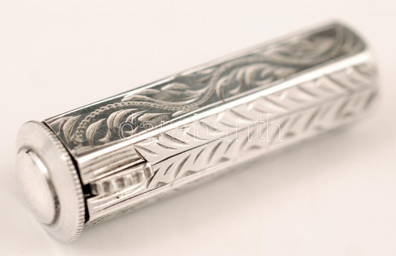 cca 1900 Ezüst rúzstartó, gazdagon díszített, jelzett, Ag., nettó:16gr., 4,5cm/ lipstick holder, silver, richly decorated, signed, Ag, net. 16gr, 4.5cm