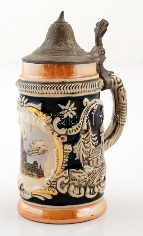 Emlék korsó "Strasbourg" felirattal, mázas fajansz, ón tetővel, matric... https://www.darabanth.com/de/236-Fernauktion/236.0/Andere-Sammelgebiete/Keramiken~400014/Emlek-korso-Strasbourg-felirattal-mazas-fajansz-on-tetovel-matricas-jelzes-nelkul-m~II1083777