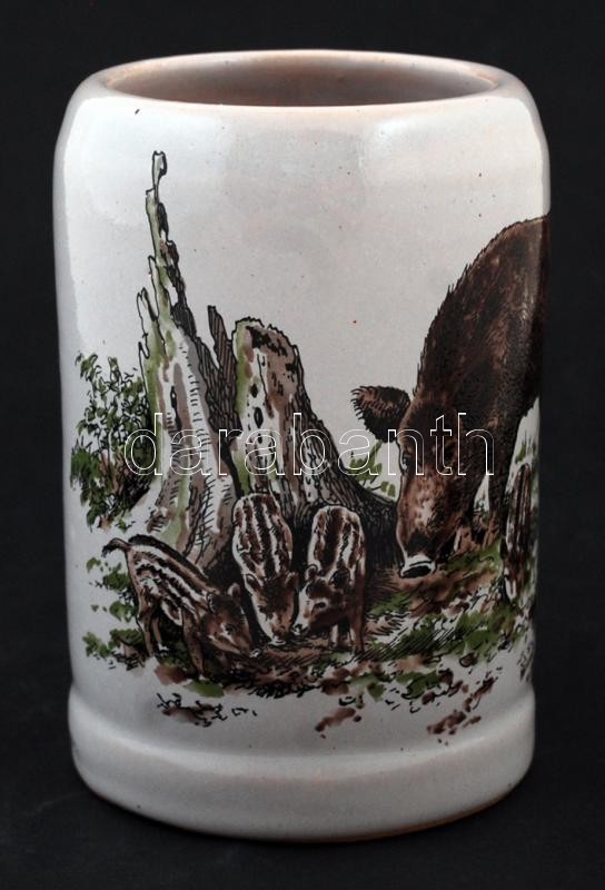 Beschreibung: SB Vadászjelenetes kerámia bögre, kézzel festett, jelzett, hibátlan, m:11cm
