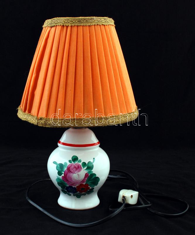 Beschreibung: Virágmintás kerámia asztali lámpaernyővel, zsinórral, kézzel festett, apró hajszálrepedésekkel, m: 32 cm