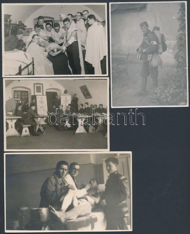 Beschreibung: cca 1934 Katonai orvosképzés fotói, hátoldalon feliratozva, 4db, cca 8x13cm