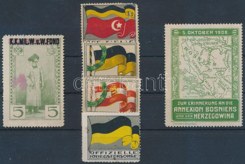 Beschreibung: 1908-1916 Militária 6 klf német nyelvű emlék- és segély bélyeg