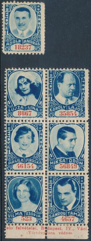 Beschreibung: Híres színészek levélzárókon (fotók Angelo műtermeiből), Jávor Pál, Vaszary Piri, Rökk Marika, 7 db