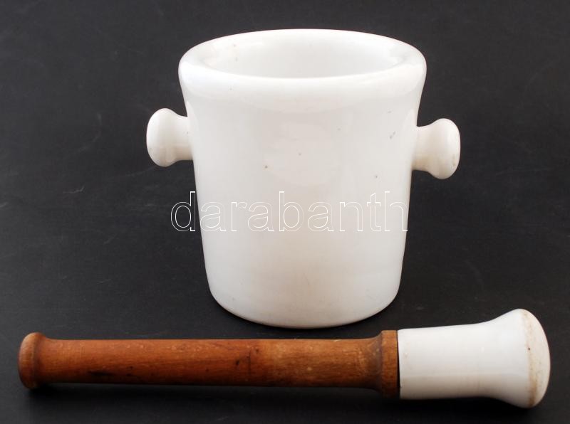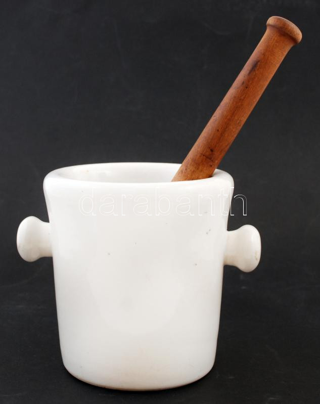 Drasche Porcellán-Fayencegyár, Köszénbánya s Téglagyár Társulat Budapesten patikai porcelán mozsár törővel, jelzett, m:17cm/ Large vintage pharmacy mortar and pestle