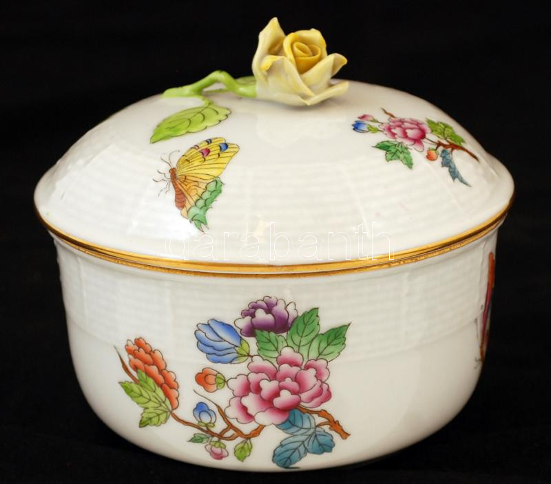 Herendi Viktória mintás bonbonier, kézzel festett, a rózsán apró lepat... https://www.darabanth.com/de/236-Fernauktion/236.0/Andere-Sammelgebiete/Porzellan~400015/Herendi-Viktoria-mintas-bonbonier-kezzel-festett-a-rozsan-apro-lepattanassal-jelzett-m-1~II1088346