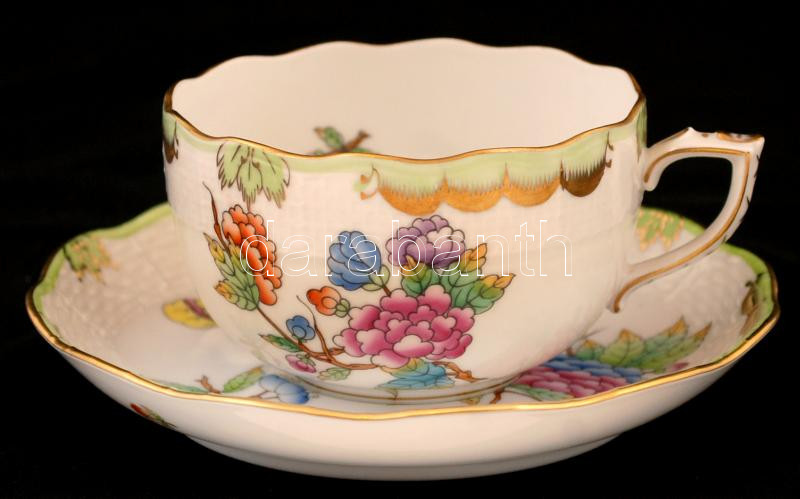 Beschreibung: Herendi Viktória mintás teás csésze és alj, kézzel festett, jelzett, hibátlan