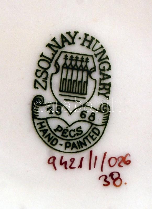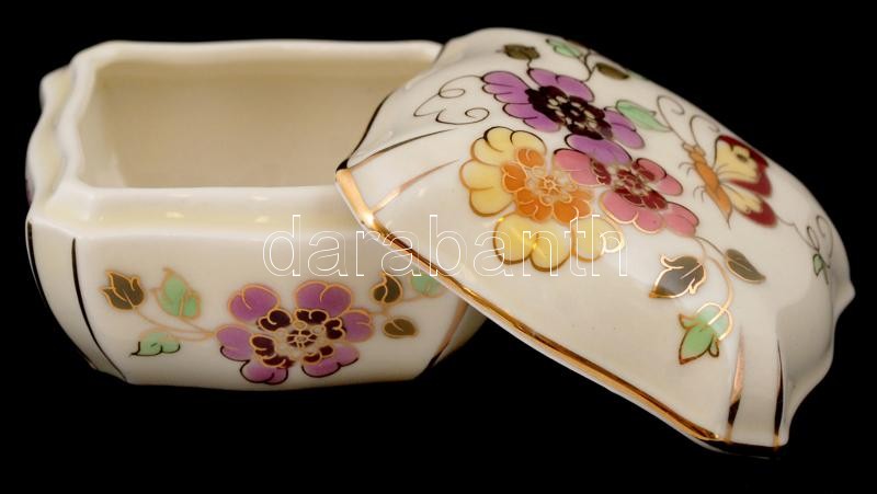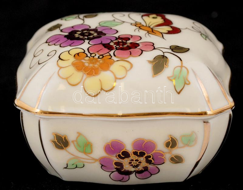 Beschreibung: Zsolnay pillangómintás porcelán ékszertartó, kézzel festett, hibátlan, jelzett, 8x8x4,5 cm