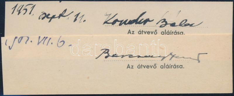 Beschreibung: Barcsay Jenő (1900-1988) festő, grafikus és Kondor Béla (1931-1972) festő aláírásai kivágásokon