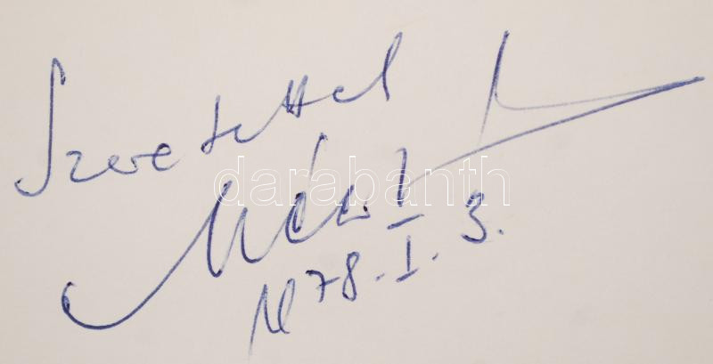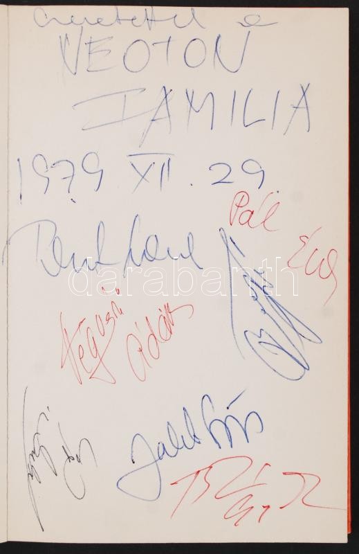Vegyes aláírás tétel: albumban gyűjtött aláírások, cca 30db, elsősorban olyan magyar művészektől, mint Rátonyi Róbert, Kozák András, Inke László, Benkő Péter, a 79-es Neoton Familia ect.