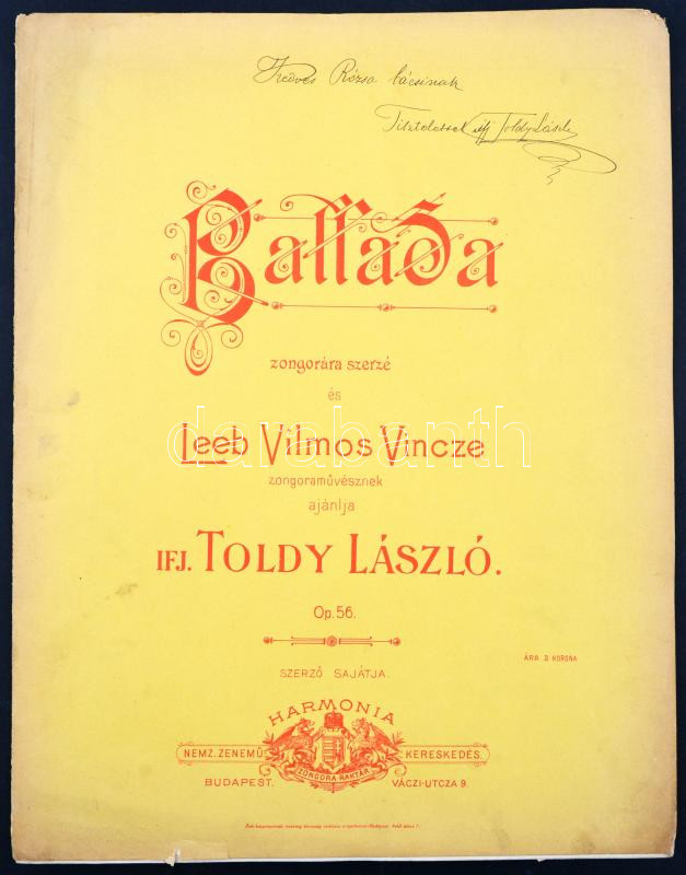 cca 1896 Kotta a zeneszerző, Toldy László saját kézzel írt ajánlásával... https://www.darabanth.com/de/236-Fernauktion/236.0/Andere-Sammelgebiete/Signatur~400035/cca-1896-Kotta-a-zeneszerzo-Toldy-Laszlo-sajat-kezzel-irt-ajanlasaval-az-Operahaz-penztC3~II1084066