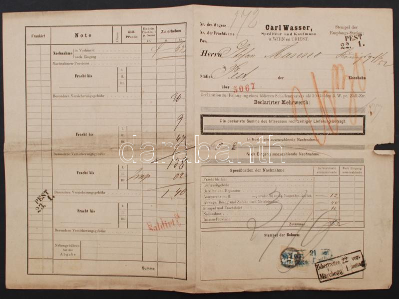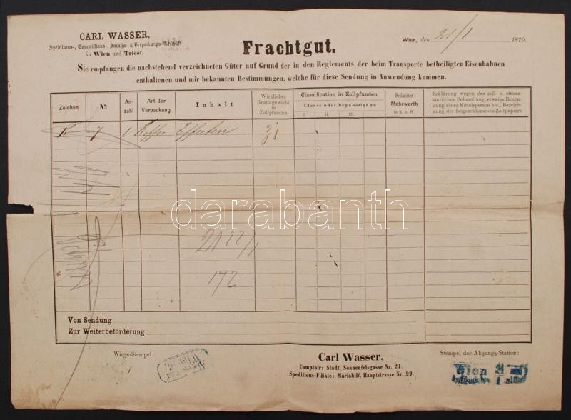 1870 5 kr okmánybélyeg Carl Wasser Spediteur und Kaufmann német nyelvű... https://www.darabanth.com/de/236-Fernauktion/236.0/Andere-Sammelgebiete/Stempelmarken~400029/1870-5-kr-okmanybelyeg-Carl-Wasser-Spediteur-und-Kaufmann-nemet-nyelvu-szamlajan~II1081750