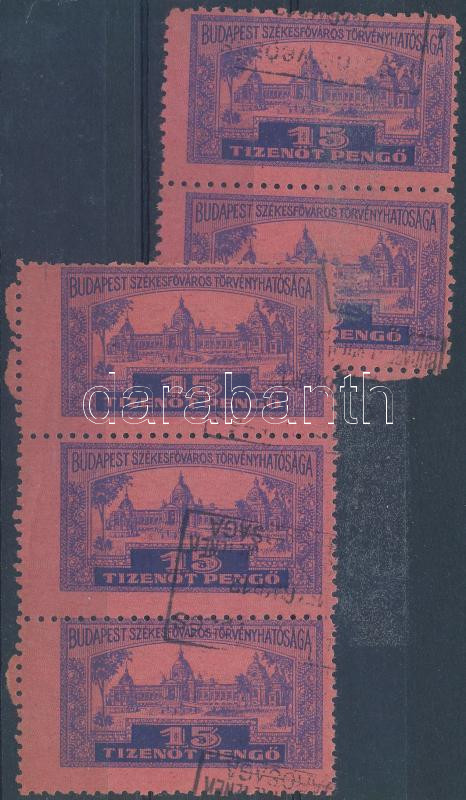 1945 Budapesti székesfőváros törvényhatósága 5x15P okmánybélyeg https://www.darabanth.com/de/236-Fernauktion/236.0/Andere-Sammelgebiete/Stempelmarken~400029/1945-Budapesti-szekesfovaros-torvenyhatosaga-5x15P-okmanybelyeg~II1085522