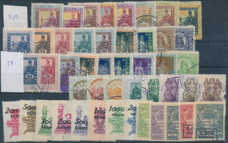 Beschreibung: 47 db törvénykezési ill. lakásügyi illetékbélyeg