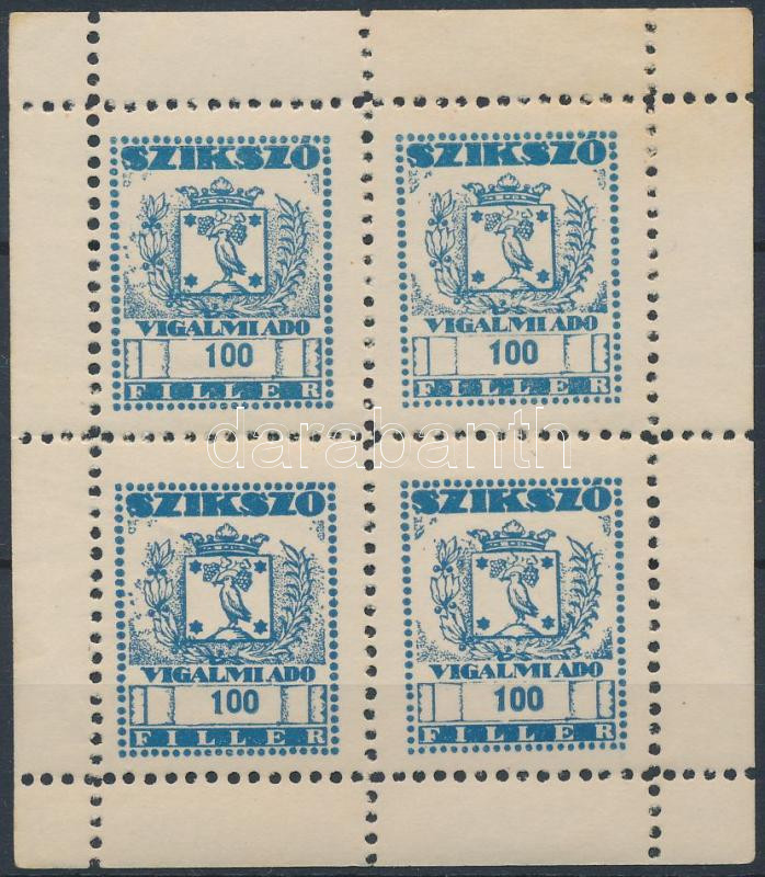 Szikszó 1948 Vigalmi adó 100f kék négyes kisív (20.000) https://www.darabanth.com/de/236-Fernauktion/236.0/Andere-Sammelgebiete/Stempelmarken~400029/Szikszo-1948-Vigalmi-ado-100f-kek-negyes-kisiv-20000~II1053116