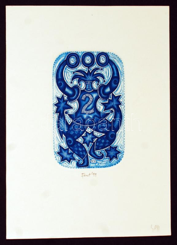 Feszt László (1930-2013):99, színezett rézkarc, papír, jelzett, 10x7c... https://www.darabanth.com/de/236-Fernauktion/236.0/Andere-Sammelgebiete/Stich~400012/Feszt-Laszlo-1930-201399-szinezett-rezkarc-papir-jelzett--10x7cm~II1088978
