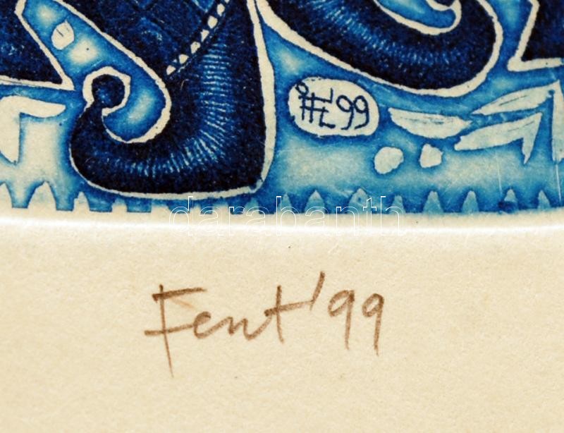 Beschreibung: Feszt László (1930-2013):99, színezett rézkarc, papír, jelzett, 10x7cm