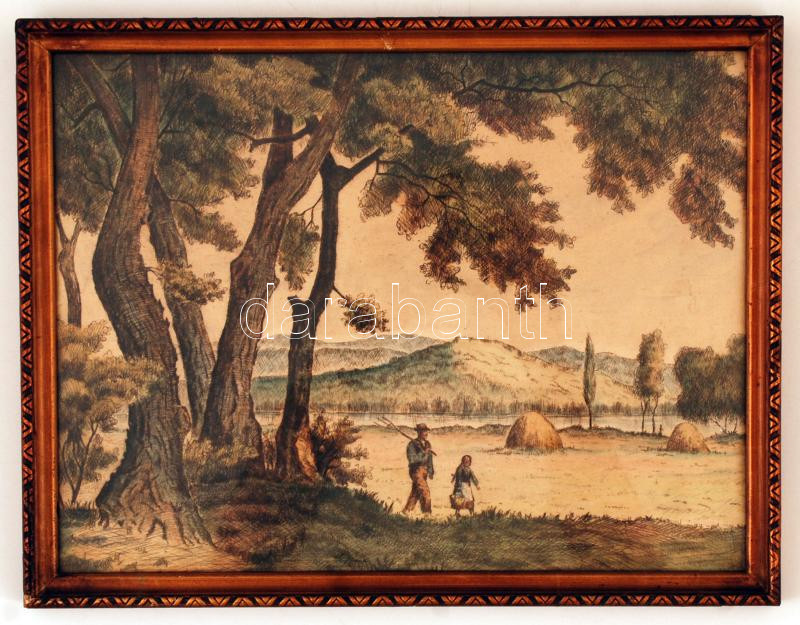 Jelzés nélkül: Hazafelé, színezett rézkarc,üvegezett keretben, 27x36c... https://www.darabanth.com/de/236-Fernauktion/236.0/Andere-Sammelgebiete/Stich~400012/Jelzes-nelkul-Hazafele-szinezett-rezkarc-uvegezett-keretben--27x36cm~II1088814