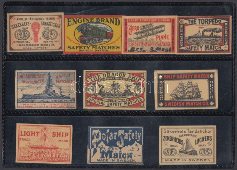 Beschreibung: 10 db régi, svéd gyufacímke / vintage Swedish match labels