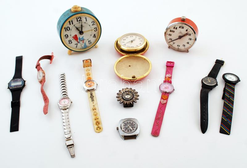Beschreibung: Quartz és ébresztő óra tétel, néhány hibás, ébresztő órák működnek, összesen:12 db
