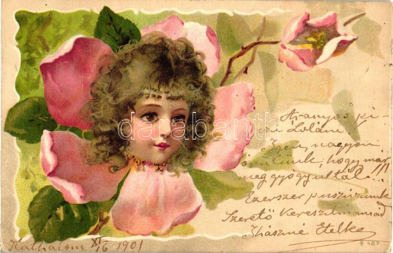 Flower, girl head, litho (fa) https://www.darabanth.com/de/236-Fernauktion/236.0/Ansichtskarten/Damen~79/Flower-girl-head-litho-fa~II1085605