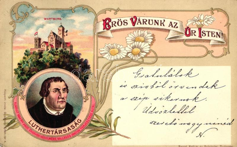 Wartburg, Luther Társaság, 'Erős Várunk az Úristen!' Art Nouveau, flor... https://www.darabanth.com/de/236-Fernauktion/236.0/Ansichtskarten/Deutschland~72/Wartburg-Luther-Tarsasag-Eros-Varunk-az-Uristen-Art-Nouveau-floral-litho-EK~II1082837
