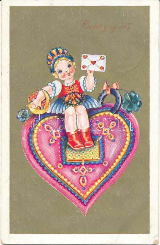New Year, Hungarian folklore, golden card (EK) https://www.darabanth.com/de/236-Fernauktion/236.0/Ansichtskarten/Folklore~70/New-Year-Hungarian-folklore-golden-card-EK~II1086584