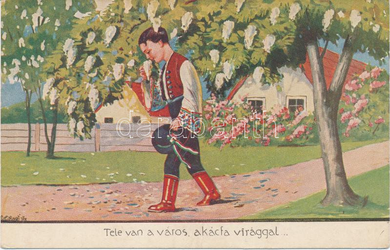 Tele van a város akácfavirággal; Magyar folklór / Hungarian folklore s... https://www.darabanth.com/de/236-Fernauktion/236.0/Ansichtskarten/Folklore~70/Tele-van-a-varos-akacfaviraggal-Magyar-folklor-Hungarian-folklore-s-Bernath~II1086784