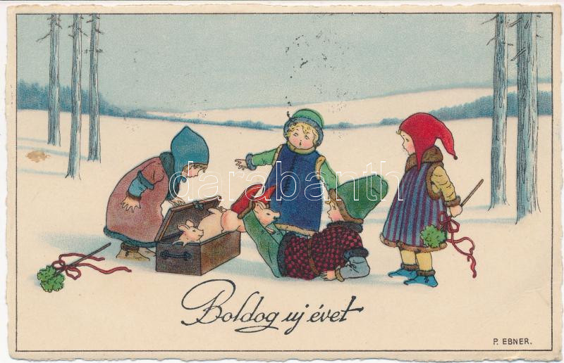 New Year, children, Erika Nr. 6055. s: Pauli Ebner (EB) https://www.darabanth.com/de/236-Fernauktion/236.0/Ansichtskarten/GruC39Fkarte~124/New-Year-children-Erika-Nr-6055-s-Pauli-Ebner-EB~II1086921