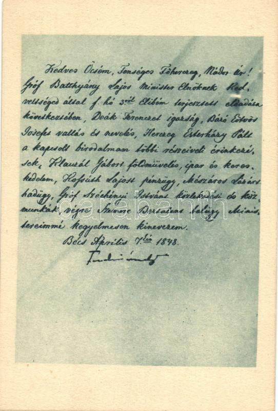 1848 Első Minisztérium kinevezési oklevele, V. Ferdinánd aláírásával, ... https://www.darabanth.com/de/236-Fernauktion/236.0/Ansichtskarten/Herrscher-Politiker-Konigshauser~132/1848-Elso-Miniszterium-kinevezesi-oklevele-V-Ferdinand-alairasaval-Komlos-Negyvennyolc~II1084789