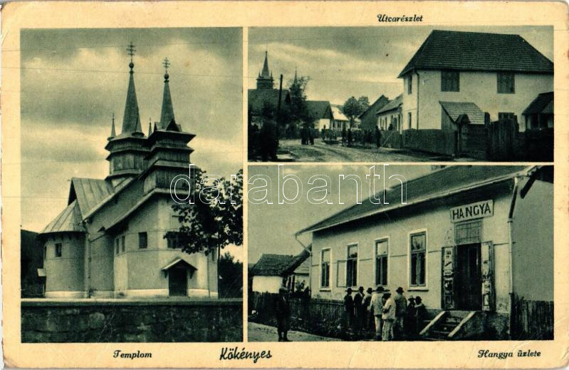 Kökényes, utca, Hangya üzlet, templom / street, shop, church (fa) https://www.darabanth.com/de/236-Fernauktion/236.0/Ansichtskarten/Karpatenukraine~36/Kokenyes-utca-Hangya-uzlet-templom-street-shop-church-fa~II1083662