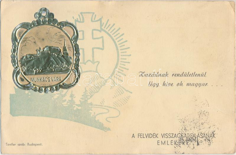 Munkács, vár; kiadja a Felvidéki Egyetemi és Főiskolai Hallgatók Egyesülete; 'a Felvidék visszacsatolásának emlékére' / castle, irredenta, 'in remembrance of the liberation of Northern Hungary' golden Emb. s: Szeiler (fa)