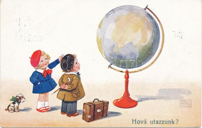 Hová utazzunk? / Children, humour, W.S.S.B. 5012/1. s: John Wills (EB) https://www.darabanth.com/de/236-Fernauktion/236.0/Ansichtskarten/Kinder~74/Hova-utazzunk-Children-humour-WSSB-50121-s-John-Wills-EB~II1086693