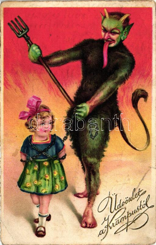 Krampus and girl, litho (fa) https://www.darabanth.com/de/236-Fernauktion/236.0/Ansichtskarten/Krampus~95/Krampus-and-girl-litho-fa~II1084759
