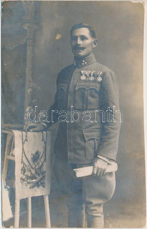 Beschreibung: 1919 Magyar katona fotója, Ploh J. fényképészeti műintézete Hódmezővásárhely / Hungarian soldier photo (r)