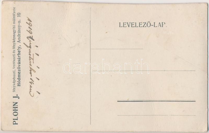 1919 Magyar katona fotója, Ploh J. fényképészeti műintézete Hódmezővás... https://www.darabanth.com/de/236-Fernauktion/236.0/Ansichtskarten/Militaria~91/1919-Magyar-katona-fotoja-Ploh-J-fenykepeszeti-muintezete-Hodmezovasarhely-Hungarian-s~II1086659