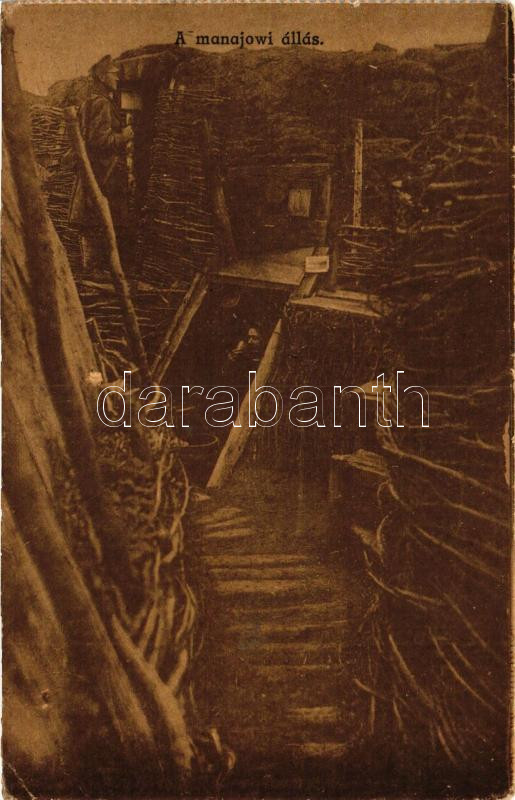 A manajowi állás / WWI Hungarian military card, trench (EK) https://www.darabanth.com/de/236-Fernauktion/236.0/Ansichtskarten/Militaria~91/A-manajowi-allas-WWI-Hungarian-military-card-trench-EK~II1021463