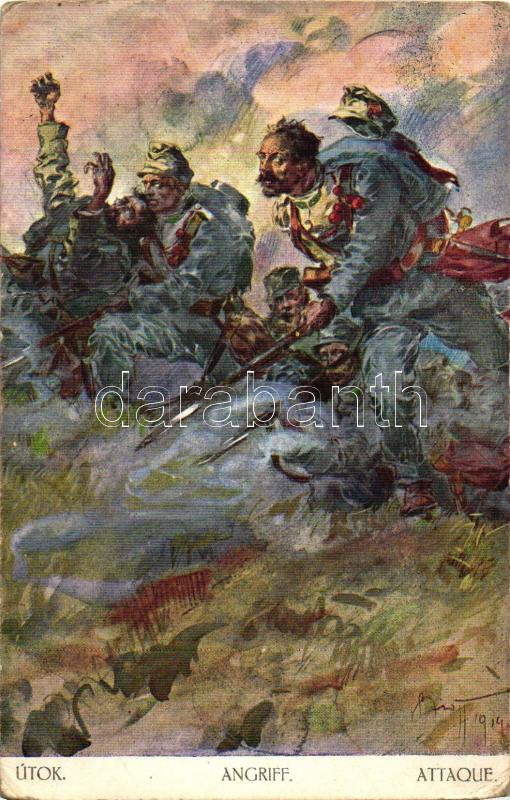 Angriff / WWI K.u.K. military, attack, artist signed (fa) https://www.darabanth.com/de/236-Fernauktion/236.0/Ansichtskarten/Militaria~91/Angriff-WWI-KuK-military-attack-artist-signed-fa~II1083526