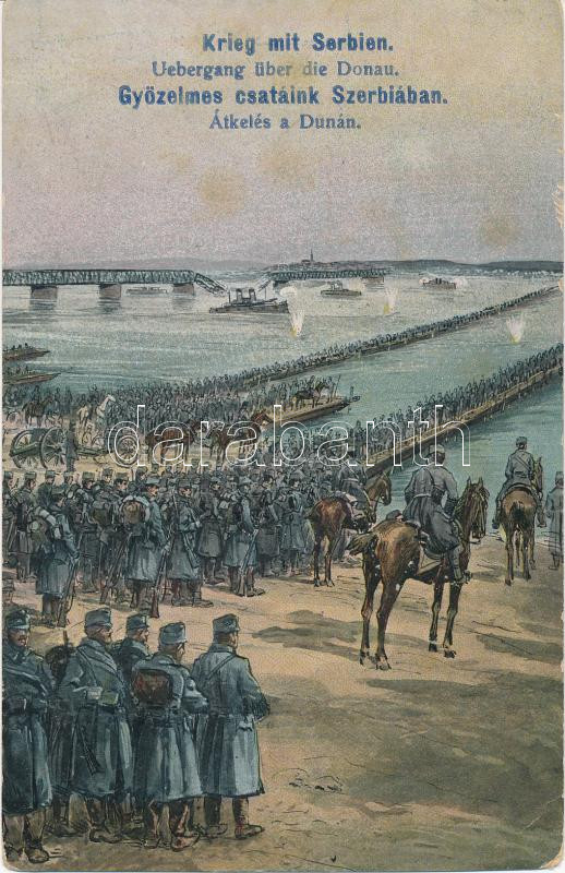 Győzelmes csatáink Szerbiában, átkelés a Dunán / WWI K.u.K. military i... https://www.darabanth.com/de/236-Fernauktion/236.0/Ansichtskarten/Militaria~91/Gyozelmes-csataink-Szerbiaban-atkeles-a-Dunan-WWI-KuK-military-in-Serbia-fl~II1088160