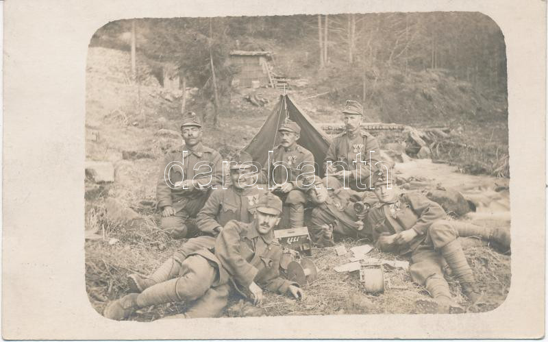 WWI K.u.K. soldiers at the military camp, tent, photo https://www.darabanth.com/de/236-Fernauktion/236.0/Ansichtskarten/Militaria~91/WWI-KuK-soldiers-at-the-military-camp-tent-photo~II1088164